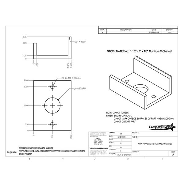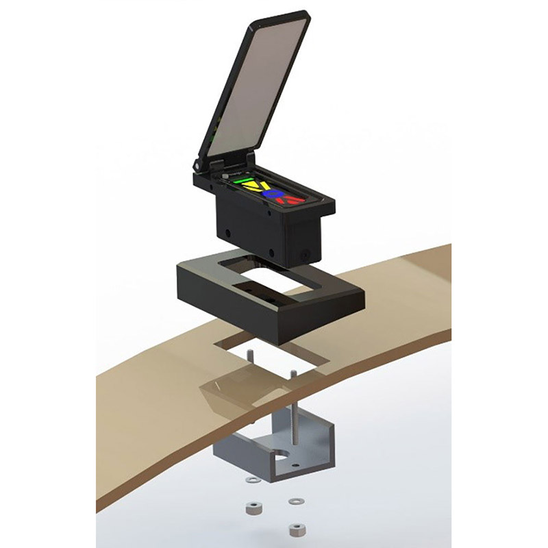 To accommodate aircraft with a sloped glare shield, Alpha Systems designed a mounting kit that replaces the standard plate and below dash angle brackets.