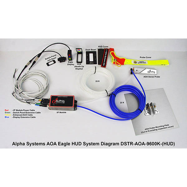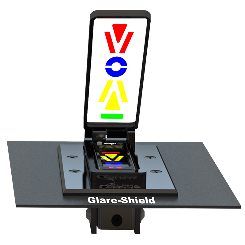 The Flush Mount HUD kit sits on top of the Eagle display, showing the display segments in the HUD glass. The Eagle Flush Mount HUD kit comes complete with interface computer, prewired cable/connector harnesses, tubing, cut to fit AOA probe mounting plate, hardware, and flush mount HUD mounting brackets for installation in any aircraft. Our systems are designed for simple installation and pilot flown calibration for real time, instantaneous full-scale AOA range. The Eagle display is a highly visible, full color, chevron style display. With the chevron display, when you come in for a landing you want to fly to the blue donut (on speed for landing). Should you come in with too low of an angle of attack, the yellow chevron will light up and tell you to put your nose up. Should you come in with too high of an angle of attack, the red chevron will light up and tell you nose down. HUD FEATURES The HUD is a self contained adjustable beam splitter adapter that mounts to the lip of the Eagle display and turns the Alpha System AOA into a true HUD. Intended for placement directly within the pilot's peripheral vision. Allows for instantaneous viewing of AOA information exactly where needed. The HUD glass is an enhanced color correcting, anti-glare lens. Comes complete with mounting frame, bezel, display brackets and hardware. Frame Dimensions: L: 4 1/8", W: 1.250" Bezel Dimensions: L: 4" x W: 2.5" |