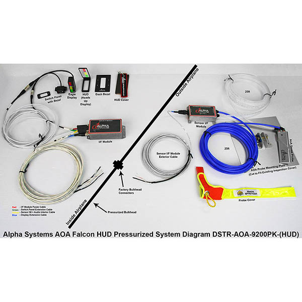 The HUD is a self contained adjustable beam splitter adapter that mounts to the lip of the Falcon display and turns the Alpha System AOA into a true HUD. Intended for placement directly within the pilot's peripheral vision. Allows for instantaneous viewing of AOA information exactly where needed. The HUD glass is an enhanced color correcting, anti-glare lens. Comes complete with mounting frame, bezel, display brackets and hardware. |