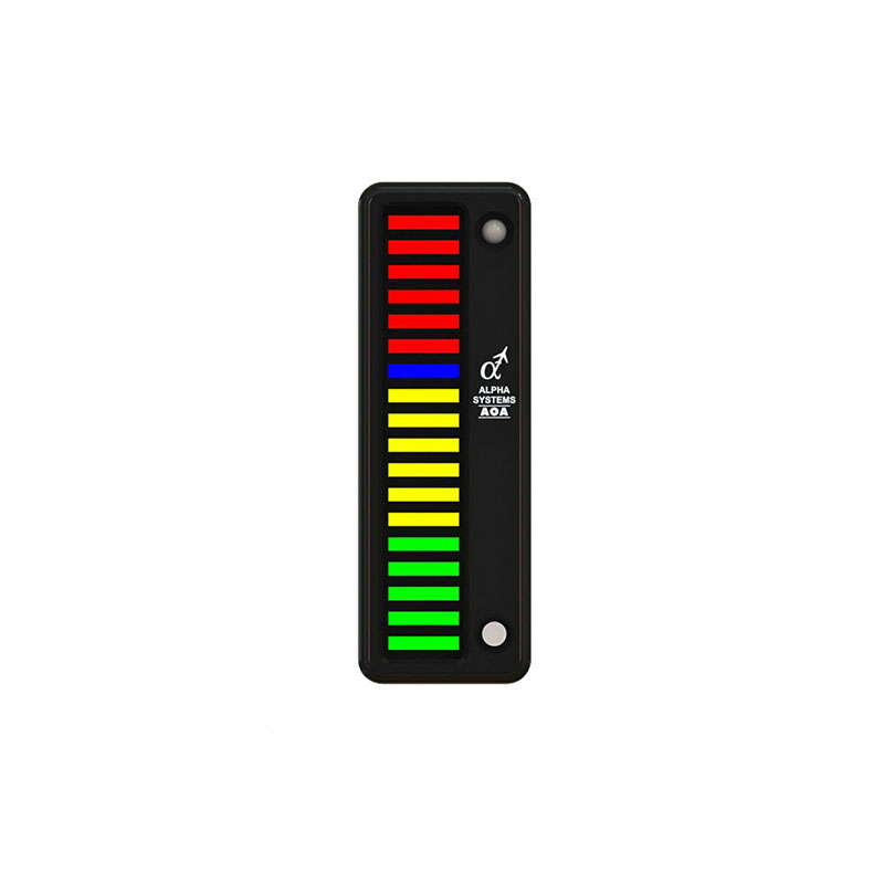 The Falcon kit has a vertical light bar style display. With the vertical light bar display, when you come in for a landing you want to fly to the blue LED (on speed for landing). Should you come in with too low of an angle of attack, the display will illuminate into the yellow, telling you to put your nose up. Should you come in with too high of an angle of attack, the display will illuminate red, telling you to put your nose down. This kit comes with the Switch Panel Pre-Mounted in the Above Dash HUD (Heads Up Display) adapter kit.