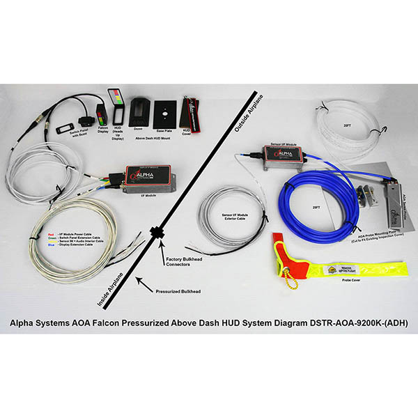 The HUD is a self contained adjustable beam splitter adapter that mounts to the lip of the Falcon display and turns the Alpha System AOA into a true HUD. Intended for placement directly within the pilot's peripheral vision. Allows for instantaneous viewing of AOA information exactly where needed. The HUD glass is an enhanced color correcting, anti-glare lens. Comes complete with mounting frame, base adaptor plate, dome, display brackets and hardware. |