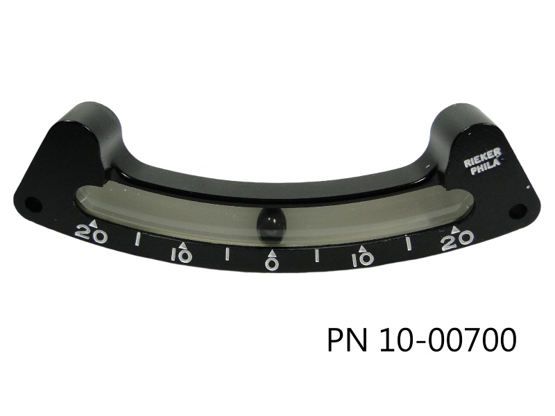 Bank indicators show lateral inclination relative to the horizon. In turning, instantly register slightest departure from the correct banking angle. Bank scale has white markings on a black background. New manufacture. Available in 2 models. Approximate dimensions: 10-00600 = 2.5" L x 1" W 10-00700 = 5.5" W x 1.5" L |