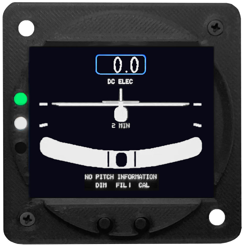 **NOT FAA APPROVED - FOR USE IN EXPERIMENTAL AIRCRAFT ONLY** The RADIANT Turn Coordinator provides a visual indication of turn rate along with a visual indication of slip / skid, utilizing an ultra bright, daylight readable color LCD display.