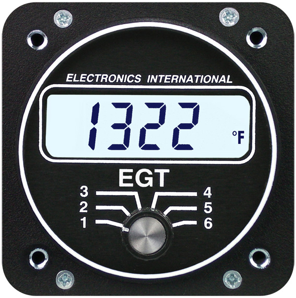 E-6: Six channel EGT kit, 2 1/4" mount, 2.5" depth, 24 oz kit, STCd, TSOd, PMAd, 1 degree resolution, accurate within 1/2%, viewable in direct sunlight, backlit, operates from 7.5 to 35 volts at .1 amp.