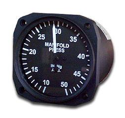 Manifold pressure is one factor used to obtain correct power setting of the engine. The indicators are temp. and altitude compensated. Matte-white dials. 3-1/8" GAUGE, 10"-50" Hg. Interchangeable with AN5770-1. Non TSO'd (not certified). |