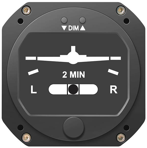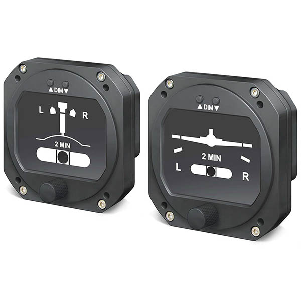 Because the RCA8310-3 has no mechanical gyroscope, it is much more stable and reliable than mechanical gyro instruments. It can be set to output all necessary signals for legacy autopilot applications. Optional features, such as Internal Battery Back-up (recommended) and NVIS compatibility are also available. The RCA8310-3 comes standard with a variety of customizations allowing you to select between three classic/traditional looks: 1) Turn Coordinator 2) Turn and Bank (with doghouse indexes) and 3) Turn and Bank (without doghouse indexes). The autopilot output signals can be disabled if not required. Each configuration displays a ball type inclinometer (slip indicator) to show slip and skid for a coordinated turn. |