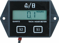 Now both a digital tachometer and an hourmeter in the same low cost and small size package! No power required yet there is a large 7 segment LCD display. Solid state electronics with quartz crystal technology make this instrument highly reliable. Easy to install - just wrap the attached wire around your spark plug cable. The case is completely sealed, it operates in a wide temperature range and the service interval is programmable. |