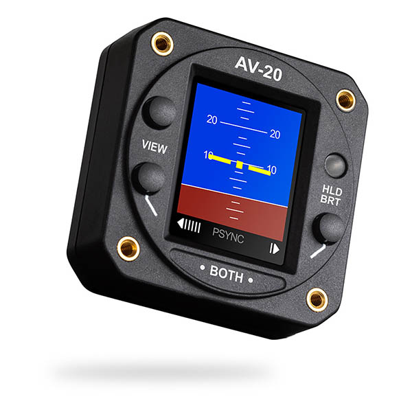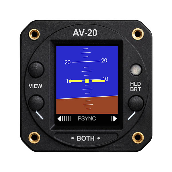 Complement Your Panel with a Certified (NORSEE) 12-In-1 Display that adds a suite of in-flight information to nearly any panel. Designed to seamlessly fit in a standard 2 1/4-inch round instrument opening, the AV-20-S offers a standby attitude indicator, angle of attack, bus voltage, slip/skid Indication, outside air temperature, density altitude, G meter, and more—all protected with a 30-minute internal battery backup for uninterrupted function in the event of power loss. Now also approved by the FAA as an advanced time-keeping device equivalent and hence a replacement for the sweep-second-hand clocks of old. The unit is considered a replacement for clocks in Part 23, Class I and II IFR aircraft per advisory circular AC 20-94A.