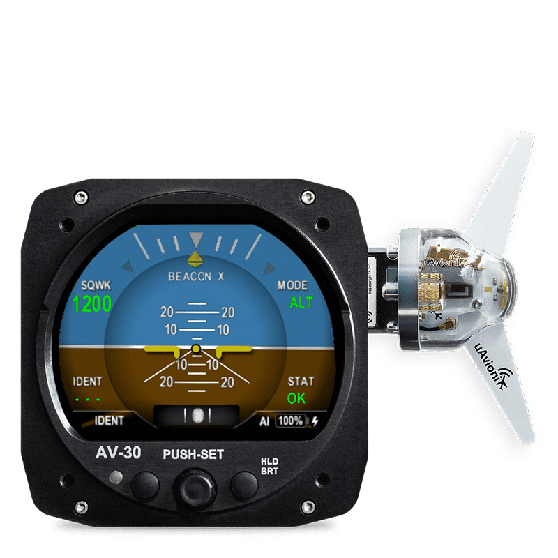 The next era of global ADS-B. Compatible with space and ground-based ADS-B surveillance systems, tailBeaconX is a Mode S Extended Squitter ADS-B transponder and WAAS GPS integrated into an LED rear position light. With global compliance, tailBeaconX is the key to limitless destinations. Extend tailBeaconX and your panel’s functionality when you pair AV-30 as tailBeaconX’s control head. AV-30 also functions as a digital primary AI or DG display with even more features for limitless possibilities. |