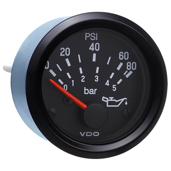 80 PSI/5 bar Oil Pressure Gauge, for VDO Sender, 12V, M4 Stud Connection Cockpit International 80 PSI/5 bar Oil Pressure Gauge, Use with VDO Sender, 12V, M4 Stud Connection |