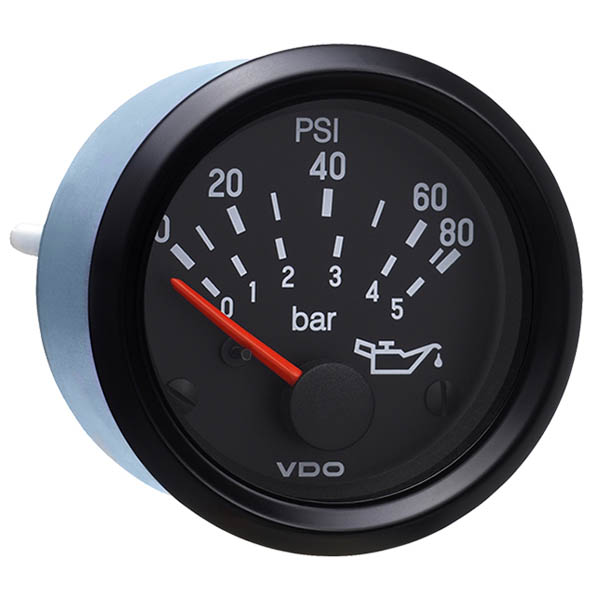80 PSI/5 bar Oil Pressure Gauge, for VDO Sender, 24V, M4 Stud Connection