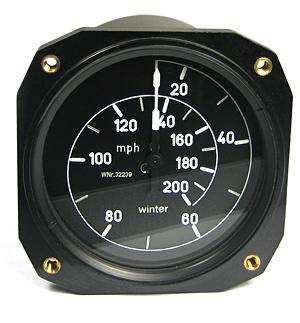 Airspeed-indicators measure the difference between total pressure and static pressure. The total (or measured) pressure is sensed by a pitot tube positioned at the stagnation point of the airstream and is carried to the airspeed indicator by a hose. A static pressure sensor can also be connected.The measuring element is an open diaphragm unit with excellent elastic properties; hysteresis (differences between advance and return movement) and secondary elastic effects are negligible. The effect total pressure and static pressure acts on the diaphragm, causing a deformation, that is transferred to the pointer by a linkage and gear mechanism. The different operating ranges of the aircraft can be identified by colour markings on the airspeed indicator dial. The instruments are insensitive to shock and vibration. |