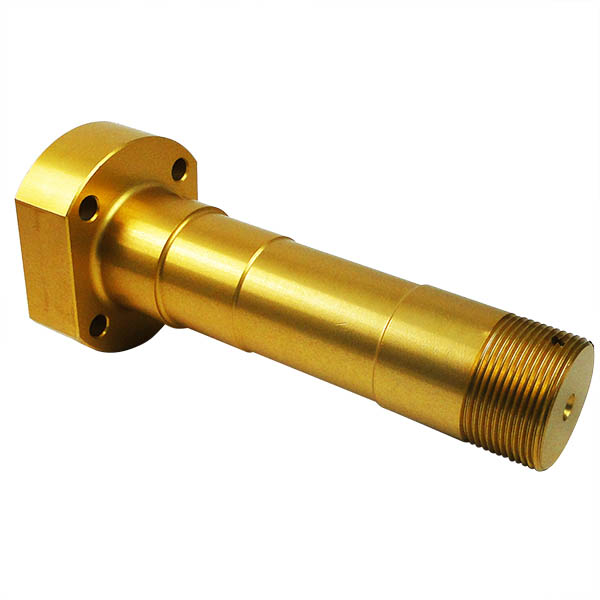 Machined from 2024T3 aluminum. Gold anodized per specification MIL-A-8625C, Type II for improved corrosion resistance. Length 5-3/4". Mounting bolt pattern is four equally spaced 1/4" dia. holes on 1-15/16" dia. bolt circle. Thread size: 1-1/4 x 16. 3/4" Mount base thickness