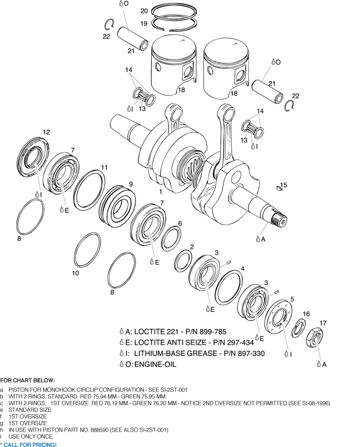 Replacement parts for 618 UL Engine crankshaft, bearings, piston parts. Explanations of symbols and statements in part number charts: