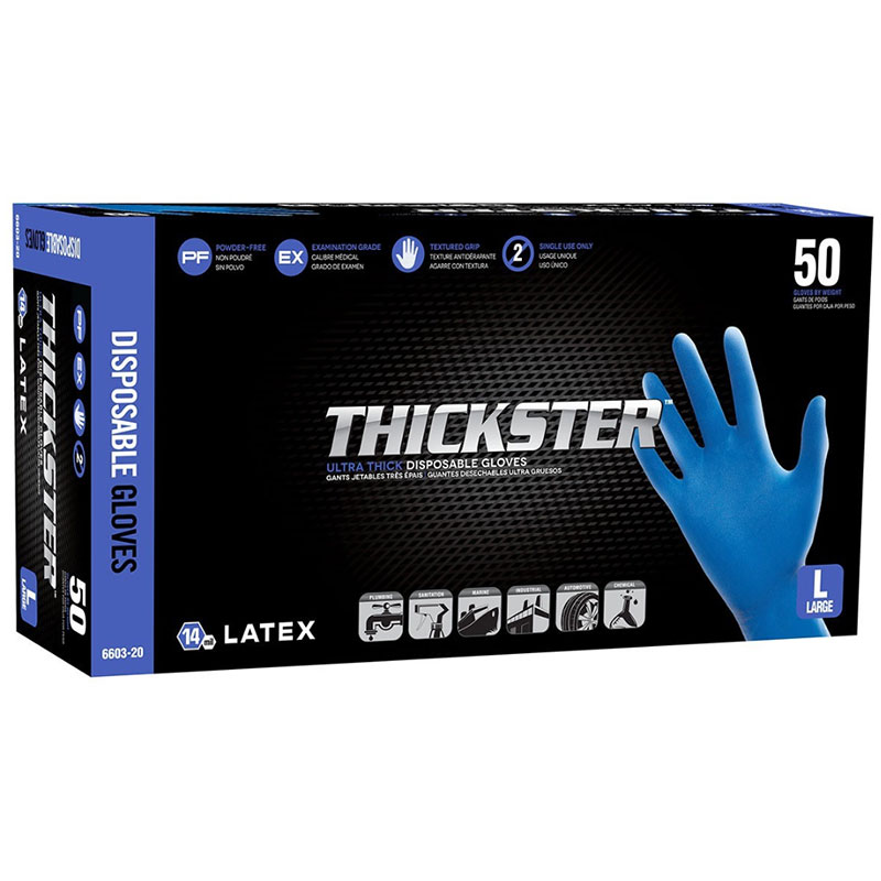 The Thickster glove is ideal for your next mechanic, paint, or clean-up task. Made with an ultra-tough 14 mil latex, this glove is powder-free yet soft and flexible. Constructed with a strong puncture and abrasion resistant, this glove also provides extended length protection with its 12-inch length. Textured for a superior grip, this exam grade glove will get through your most toughest task.