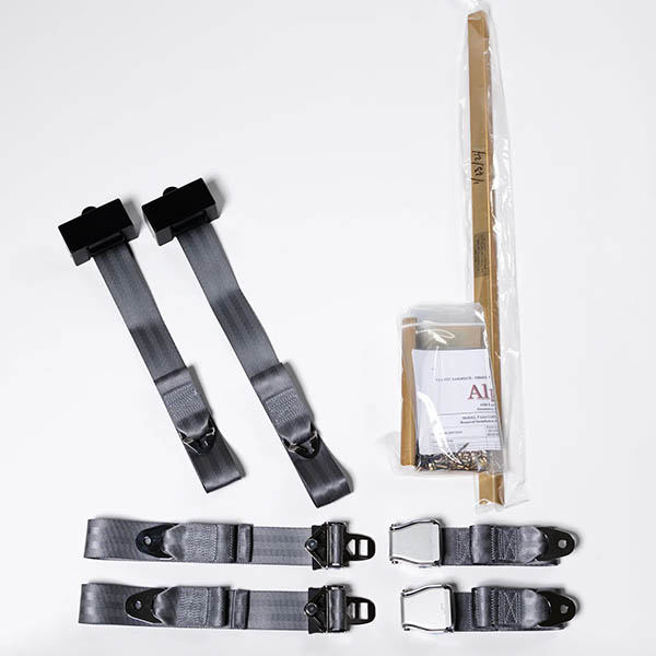 The kit includes belts for two seats, all the hardware needed, instructions, signed authorization, and the 8130-3 form.