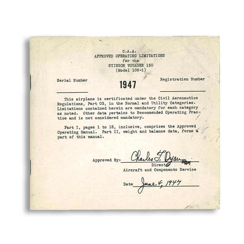 Stinson 108-1 Caa Approved Operating Limits