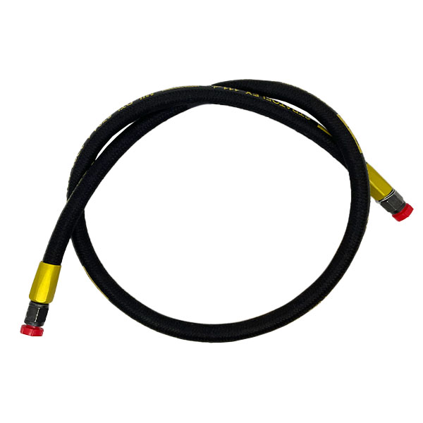 Tube - Seamless synthetic rubber adhesive. Reinforcement - One fiber braid and one high tensile steel wire braid. Cover - Fiber braid impregnated with oil and mildew resistant rubber adhesive.