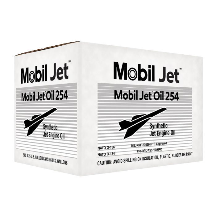 | Mobil Jet Oil 254 is recommended for aircraft gas turbine engines of the turbo-jet, turbo-fan, turbo-prop, and turbo-shaft (helicopter) types used in commercial and military service. It is also suitable for aircraft-type gas turbine engines used in industrial or marine applications.Mobil Jet Oil 254 is approved against the High Thermal Stability (HTS) classification of U.S. Military Specification MIL-PRF-23699. It is also compatible with other synthetic gas turbine lubricants meeting MIL-PRF-23699. However, mixing with other products is not recommended because the blend would result in some loss of the superior performance characteristics of Mobil Jet Oil 254.Mobil Jet Oil 254 is completely compatible with all metals used in gas turbine construction, as well as with F Rubber (Viton A), H Rubber (Buna N), and other commonly used seal materials. |