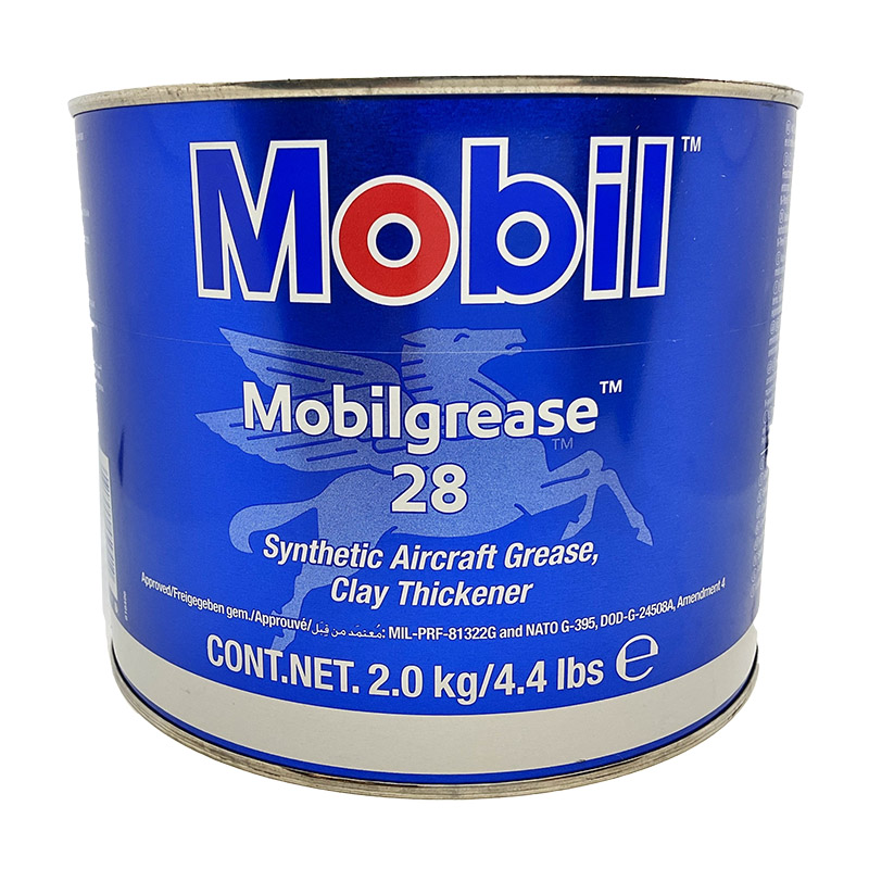 Mobilgrease 28 is a supreme performance, wide-temperature, antiwear grease designed to combine the unique features of a polyalphaolefin (PAO) synthetic base fluid with an organo-clay (non-soap) thickener. Its consistency is between an NLGI No. 1 and No. 2 grease. It offers outstanding performance over a wide temperature range. The wax-free nature of the synthetic base fluid, together with its high viscosity index compared to mineral oils, provide excellent low temperature pumpability, very low starting and running torque, and can help reduce operating temperatures in the load zone of rolling element bearings. The clay thickener gives Mobilgrease 28 a high dropping point value of around 300ºC, which provides excellent stability at high temperatures. Mobilgrease 28 resists water washing, provides superior load-carrying ability, reduces frictional drag, and prevents excessive wear. Tests show that Mobilgrease 28 lubricates effectively rolling element bearings under conditions of high speeds and temperatures. Mobilgrease 28 has also shown excellent ability to lubricate heavily loaded sliding mechanisms, such as wing flap screw jacks. For more than 30 years, Mobilgrease 28 has been the multi-purpose grease of choice for military and related aviation applications, worldwide. Mobilgrease 28 is qualified by the U.S. Military under Specification MIL-PRF-81322, General-Purpose, Aircraft, and Specification DOD-G-24508A (Navy) for shipboard auxiliary machinery. It is a U.S. Military Symbol WTR and NATO Code Number G-395 grease. It meets the quality level of DOD-G-24508A, Amendment 4. |