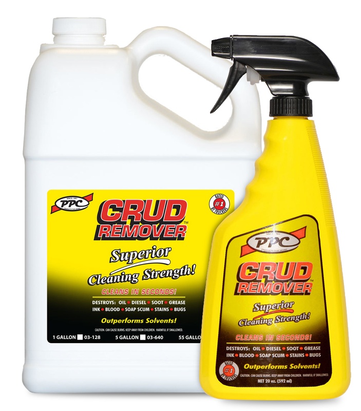 | Crud Remover, made w/ water, is an environmentally safe replacement for heavy-duty petroleum cleaning solvents. It's extremely powerful degreasing and defatting abilities enable it to dissolve diesel fuel, soot, and oily deposits on contact, grease & heavy grime in seconds, and virtually any stain from any surface, including cloth! It also loosens bolts. It can be applied in any manner, spray, brush, wipe, or soak and simply rinses off with water. |