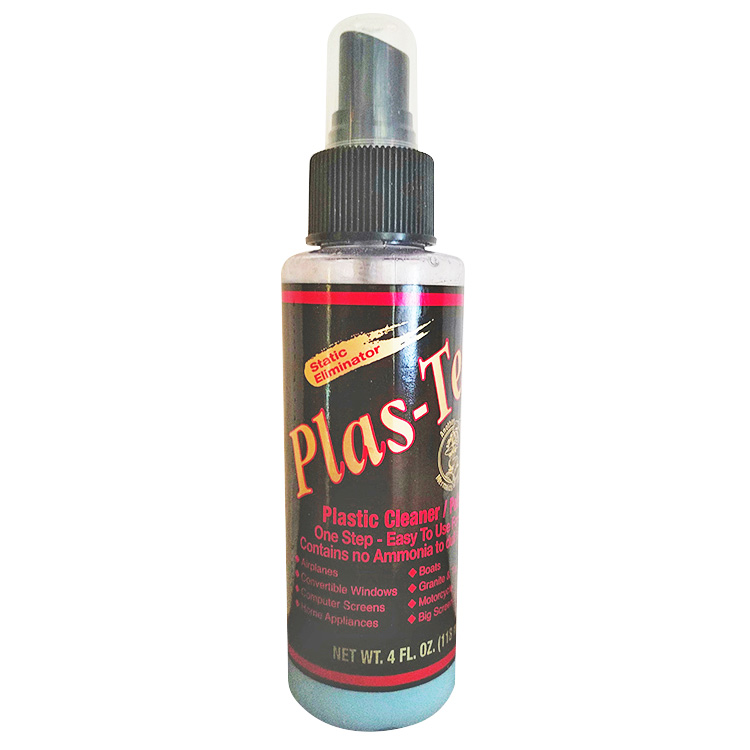 Plas-TecŪ cleans, shines, and protects todays high-tech plastics. Plas-TecŪ is a non-aggressive, optically clear cleaner that lifts fingerprints and smudges, leaving a protective, anti-static coating that resests dirt build-up. Plas-TecŪ is excellent for use on acrylic sheet, Lexan windshields and windows as well as aircraft instrument panels. Also an effective cleaner for computer screens, scanners, copiers, laptops, phones, TV and video equipment, dashboards, snowmobiles, golf carts, soft top windows, convertible car tops, goggles, sunglasses, and many other applications.