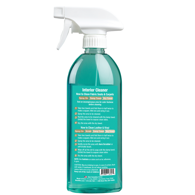 Interior Cleaner cleans and removes beverage spills and stains from Aircraft, Car, Boat, and RV carpets, seats, tray tables, side panels, cockpits, and galleys. Works well with the Aero Scrubber. |