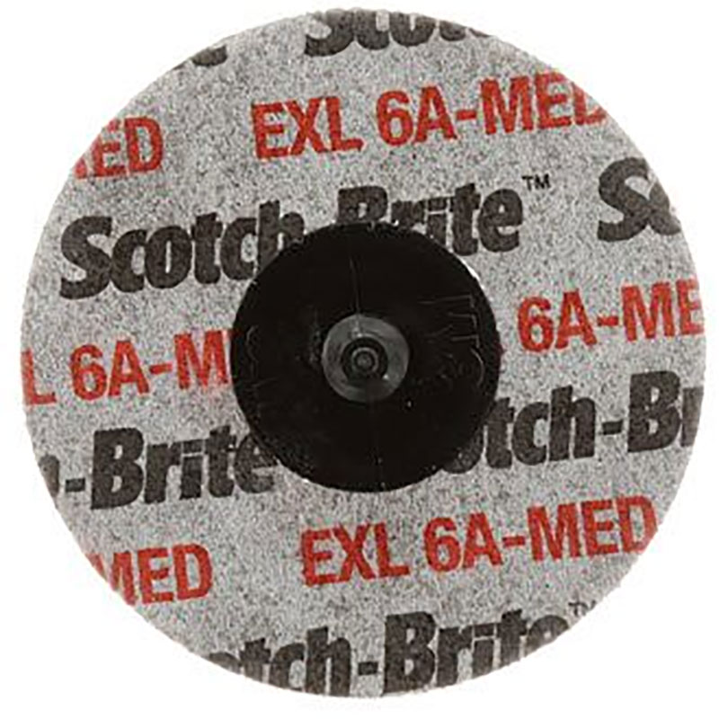 The Scotch-Brite™ Roloc™ EXL Unitized Wheel is strong and effective for edge deburring and finishing. Manufactured with compressed, non-woven fibre construction and uniform grain distribution, this wheel produces consistent, professional results for weld polishing, deburring aircraft parts, or blending and finishing on a variety of metals, plastics, and composites. This wheel includes a Roloc™ Quick Change Attachment for quick and easy change-outs.