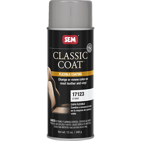 SEM CLASSIC COAT uses advanced technology to provide superior adhesion and flexibility when changing or restoring the color of most leather and vinyl. CLASSIC COAT is a fade resistant coating that won’t chip or peel and is available in many of today’s popular OEM colors. 12oz Can Colors Available: