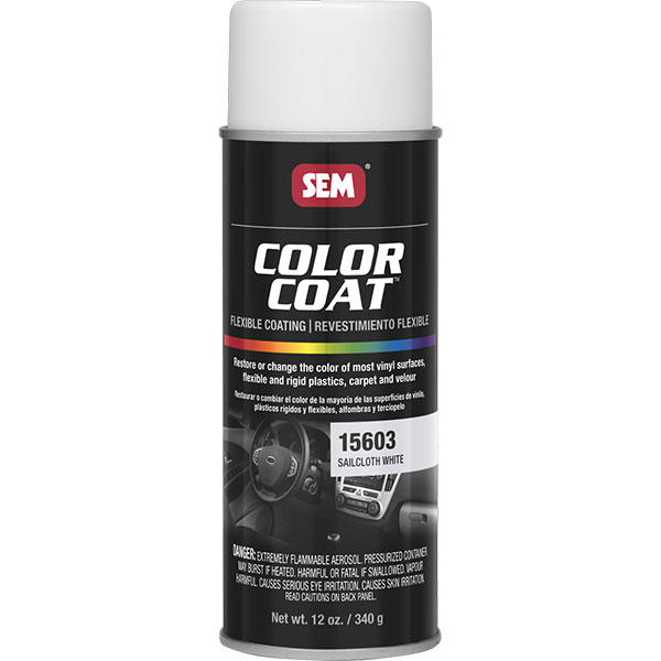 | SEM COLOR COAT is formulated to match, restore or change color on most vinyl surfaces, flexible and rigid plastics, carpet and velour. Fade resistant and flexible, COLOR COAT is not a dye, but a permanent paint coating. |