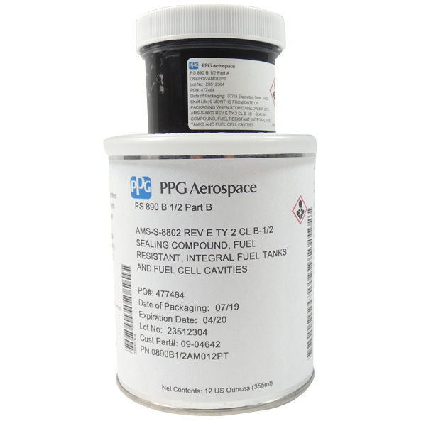 P/S 890 Class B is a two-part, manganese dioxide cured polysulfide compound. The uncured material is a low sag, thixotropic paste suitable for application by extrusion gun or spatula. It cures at room temperature to form a resilient sealant having excellent adhesion to common aircraft substrates. The following tests are in accordance with AMS-S-8802 Class B specification test methods. |