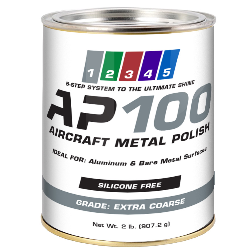 Directions: Some settling may occur during shipping, stir before using. For best results, apply 1 teaspoon of AP100 Aircraft Metal Polish to Aluminum (Clad or Mil grade) and bare metal surfaces with a clean, dry microfiber cloth – do not use water. When using an electric buffer, use a clean, soft, free of dust buffing pad. Work one 4-5 sq. ft. section at a time. Apply as needed. For maximum shine, buff off immediately while AP100 Aircraft Metal Polish is still moist – do not let dry. Minimum slinging formula. Product sold by weight not volume. Follow up with AP200 Aircraft Metal Polish.