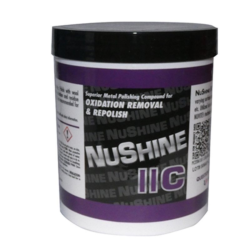 | Nuvite engineers have formulated a system of polishes to meet the needs for almost any metal and paint polishing project. New metal to antique, the formulations in the NuShine II Polishing System will give superior definition, highlights, imagery, clarity, and will retain the finish longer than normal polishes. Nuvite’s NuShine II graded polishes use high technology materials with programmed abrasive characteristics and are blended with superior carriers to offer the ability to produce cutting action when needed, yet offer micron-level finishing in the finer grades that produces highest reflectance and image excellence. |