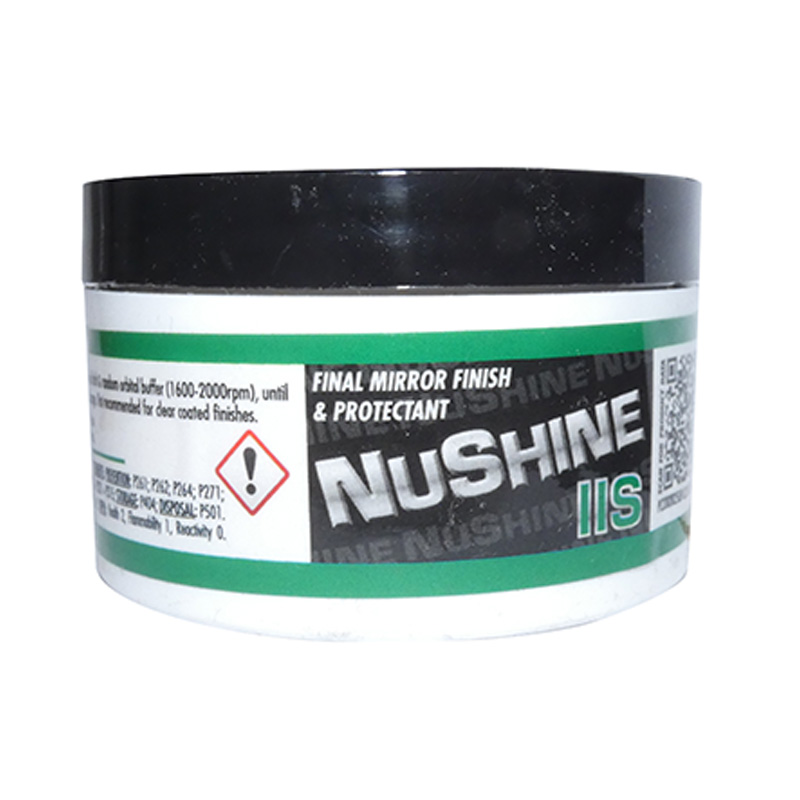 | Nuvite engineers have formulated a system of polishes to meet the needs for almost any metal and paint polishing project. New metal to antique, the formulations in the NuShine II Polishing System will give superior definition, highlights, imagery, clarity, and will retain the finish longer than normal polishes. Nuvite’s NuShine II graded polishes use high technology materials with programmed abrasive characteristics and are blended with superior carriers to offer the ability to produce cutting action when needed, yet offer micron-level finishing in the finer grades that produces highest reflectance and image excellence. |