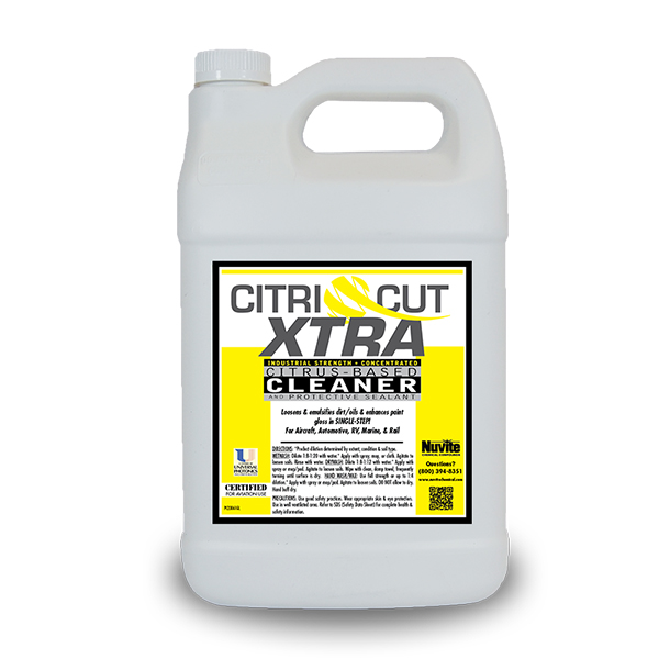Industrial strength, concentrated citrus-based cleaner and sealant. Loosens and emulsifies dirt/oils and enhances paint gloss in single step. Can be used as a dry wash, hand wax, sealant and cleaner for Aircraft, Automotive, RV, Marine and Rail.