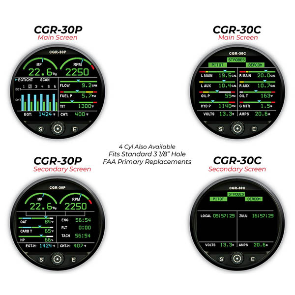 *IMPORTANT: Marking requirement form must be filled out at time of ordering. Please click the link below to download the PDF form. It must be faxed in to 951-372-0555 or emailed in before order can be processed. This combo package includes the CGR-30C & CGR-30P. TSO’d & STC’d as Primary Replacements. Instruments Fit Standard 3 1/8” Hole. For Twin Engine Options: Easily replace several of your aircraft’s primary and non-primary aircraft engine instruments with the Twin CGR-30 Combo Package which includes two CGR-30Ps and one CGR-30C. The STC’d and TSO’d CGRs can replace and consolidate many of your primary and non-primary instruments. Each CGR will mount flush through a 3 and 1/8 inch hole and will not protrude from your panel. Package Includes: