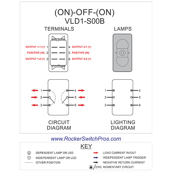 | -- | VLD1-S00B | (On)-Off-(On) No Light | DPDT | 11-15080 |