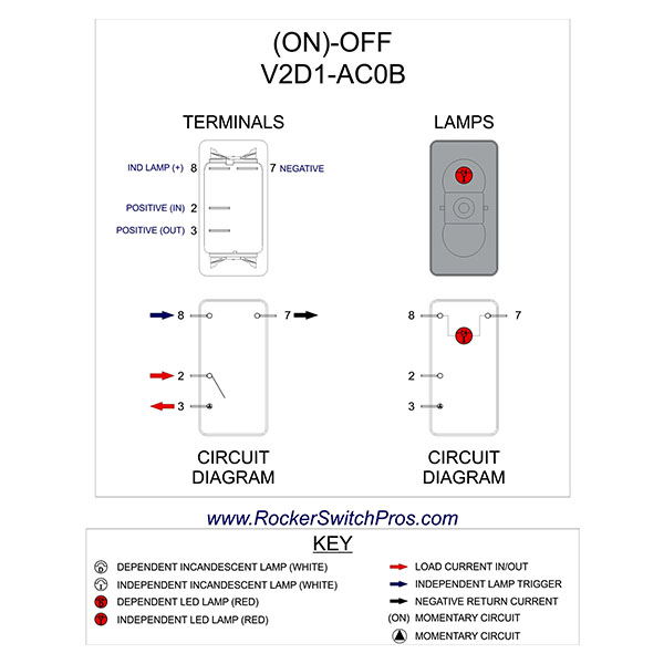 | -- | V2D1-ACOB | (On)-Off Red Light | SPST | 11-15094 |