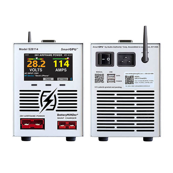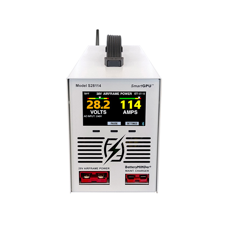 The White Lightning SmartGPU is a specialized switching-mode power supply designed to provide pilots and aviation maintenance professionals with a portable, affordable source of stable, high-current, noise-free DC power that replicates the in-flight electrical environment. Its rated output is 28-volts up to 114-amps. The GPU’s intended purpose is to energize an aircraft’s main electrical bus without using the ship’s battery or engine. It will safely provide continuous power for the most delicate electronics and airframe systems up to its full rated output. The SmartGPU mobile app allows the user to monitor the power draw from the flight deck or anywhere in the hangar. SmartGPU Features