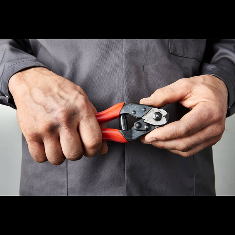 | A cable when crushed or deformed is difficult to use with fittings. These fine quality Swiss made cutters, with unique triangular jaws, never leave a frayed end. |