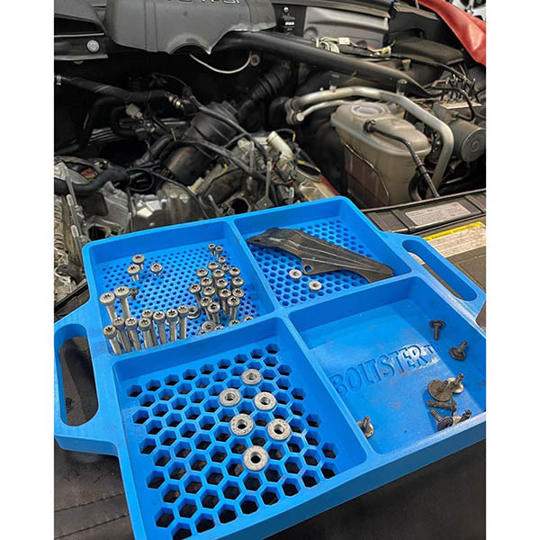 Introducing the third model in the Boltster line up, the Boltster Flexible Organizing Tray! The Boltster Tray is the next step of our product evolution. It is everything the Original Boltster provided and so much more. We have listened to your requests the past two years, and this is the result! The Boltster Tray is a must have for automotive mechanics, body shops, aviation / marine technicians, woodshops, and anyone else looking to keep their projects organized.