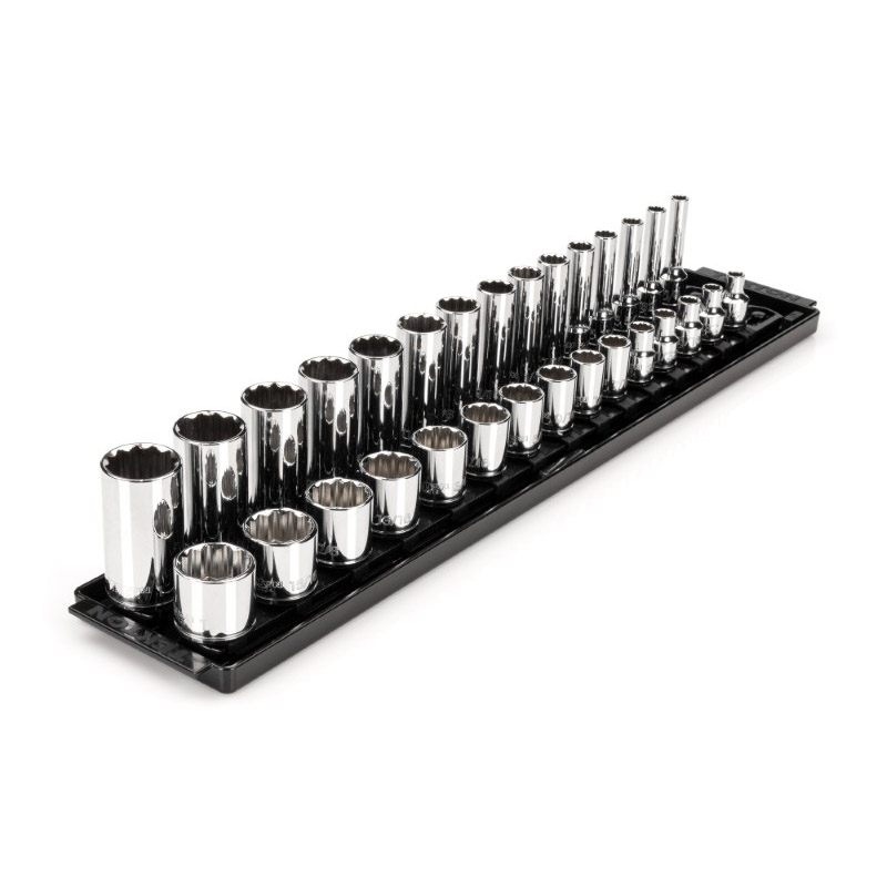 Tekton 3/8 Inch Drive 12-Point Socket Set with Rails and Tray