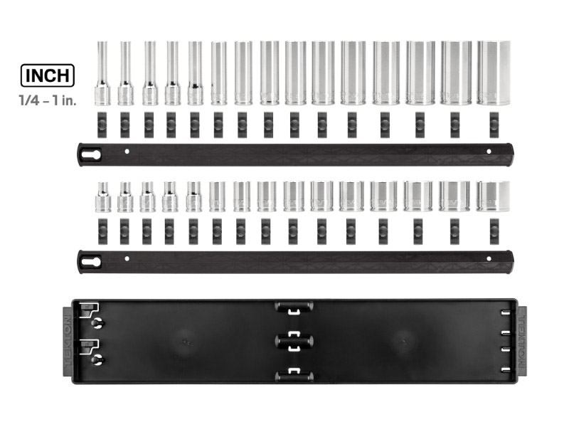 Large, Stamped Markings - Permanently impressed into the material by a roll-stamp die. - As large as possible while still being readable along the socket's curved surface - Clearly visible size numbers with extra-deep outline ![]() Fully Stepped Shoulders Narrowed diameter stretches to the base of the socket on small, deep-length sizes. This provides greater reach into tight, recessed areas. ![]() ![]() Exterior and Interior Finishes - Chrome-plated exterior is highly corrosion resistant and wipes clean to a mirror finish - Interior is protected against rust with clear coat, rather than commonly-used metallic paint ![]() 12-Point Socket Opening Get more access positions for multiple types of fasteners. ![]() ![]() Prevents Fastener Round-Off Radiused corners prevent fastener round-off by applying force to a fastener's flat sides, rather than its corners. ![]() Secure Drive Tool Engagement - Four detent grooves provide a secure connection with the retaining ball of a drive tool - Beveled inner rims help guide the socket onto other tools ![]() High Torque Strength Meets minimum value of 1.3 times the ANSI standard for Proof Torque. Verified by a single-cycle test that applies torque until specified value is reached without failure or permanent deformation. ![]() Socket Rail Organization - Patented twist-to-lock design securely holds sockets on the rail - Keyhole slot mounts to wall or workbench - Combine multiple socket rails with trays and other accessories ![]() |