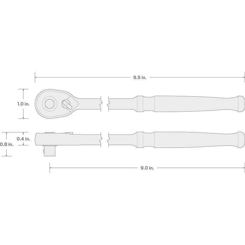 90-Tooth Gear = 4º Swing Arc The single half-moon pawl maintains 9 teeth engaged with the gear at all times, ensuring that it won't slip or skip under stress. Ultra-Compact Head Unlike conventional "low profile" designs that focus on controlling only the thickness of the head, we reduced the size in every dimension: height, width, and length. ![]() Proof Torque Our ratchets meet (and most far exceed) the industry standard for Proof Torque, a measure of strength verified by a single-cycle test that applies torque until the specified value is reached without failure or any permanent deformation. Data from: “Category 10, Type 1, Class 2 Handles, Ratchet, Reversible.” ASME B107.110-2019. ![]() Working Handle Length We name our ratchets and breaker bars according to their effective working length, which is measured from the center of the drive tang to the end of the handle. ![]() Sleek, Comfortable Handle The finger groove has pronounced interior edges for traction and control for any finger placement. The pommel at the end of the handle keeps your hand from slipping off and is rounded for comfort. ![]() Parts and Assembly ![]() |