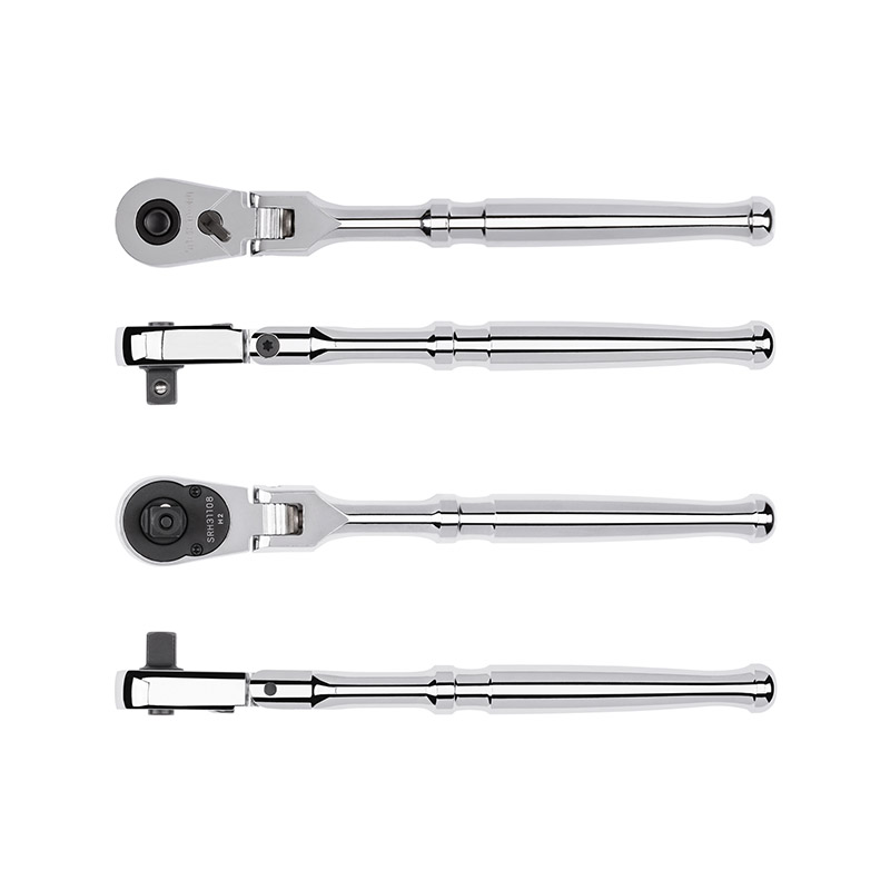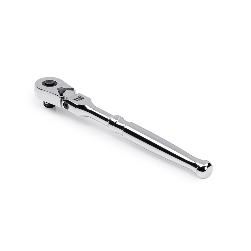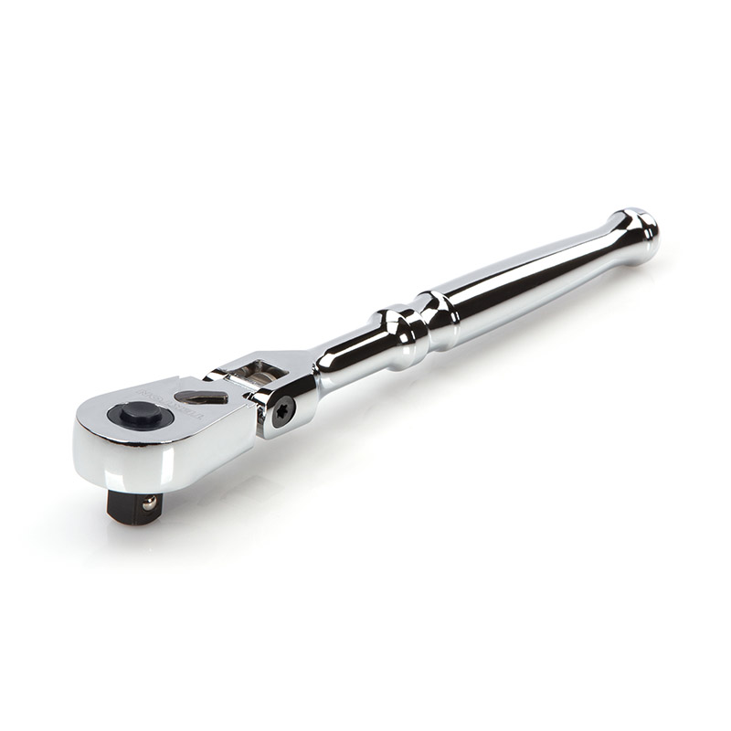 180° Flex, 9 Positions The flex head sweeps through 180 degrees, snapping to nine different detent angles to reach around obstacles. A spring-actuated pawl engages with well-defined teeth to hold the head in position. ![]() 90-Tooth Gear = 4º Swing Arc The single half-moon pawl maintains 9 teeth engaged with the gear at all times, ensuring that it won't slip or skip under stress. Ultra-Compact Head The box end is offset 15 degrees, creating clearance for your fingers and making it easier to reach around obstructions. ![]() Proof Torque Our ratchets meet (and most far exceed) the industry standard for Proof Torque, a measure of strength verified by a single-cycle test that applies torque until the specified value is reached without failure or any permanent deformation. Data from: “Category 10, Type 1, Class 2 Handles, Ratchet, Reversible.” ASME B107.110-2019 ![]() Working Handle Length The finger groove has pronounced interior edges for traction and control for any finger placement. The pommel at the end of the handle keeps your hand from slipping off and is rounded for comfort. ![]() Parts and Assembly ![]() |