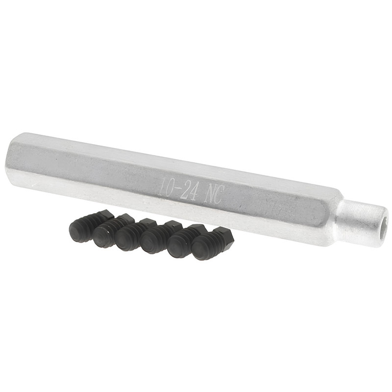 Ideal for use in layout, tool and die work; also can be used for locating fixtures, air cylinders, chucks, and general repairs. Aids in locating the die in proper relation to the punch on commercial die sets. Black oxide surface treatment. Hardness 48~52HRC. Complete set consists of four or six hardened hardened screws nested in a combined holder and wrench. |