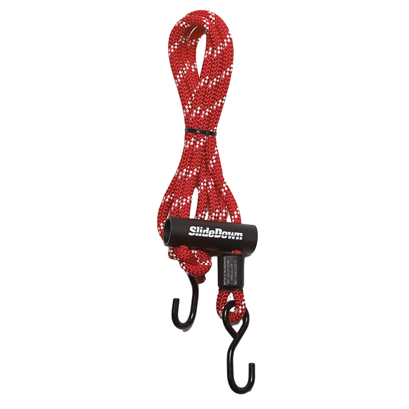 There is a fast and easy way to secure your aircraft. Developed by a pilot for pilots, the SlideDown is an exceptional new product for securing your aircraft to the ground anchors. No more complicated knots, just attach one end to the ground anchor and the other to your aircraft, pull down on the slide and your done! It’s that simple. SlideDowns are sold as a set of three, one for each wing and a tail along with a nylon carry bag to stow your set. The 7/16” kernmantle braided rope is a balanced construction consisting of a continuous filament polyester cover braided over a unidirectional nylon core and is used primarily in the safety and rescue industry. The precision drilled powder coated slide, made from 6061aircraft grade aluminum, allows for easy sliding and a tight hold. The vinyl coated hooks prevent any scratching to the aircraft contact points. Made as a “one size fits most aircraft”, the SlideDown is easily adjustable to reach most anchor points. Maximum reach on the wings are approximately 100 inches and the maximum reach on the tail is approximately 54 inches. The SlideDown can be shortened to accommodate just about any length. The SlideDown is proudly Made in the USA and available in a variety of colors. Sold in set of 3 |