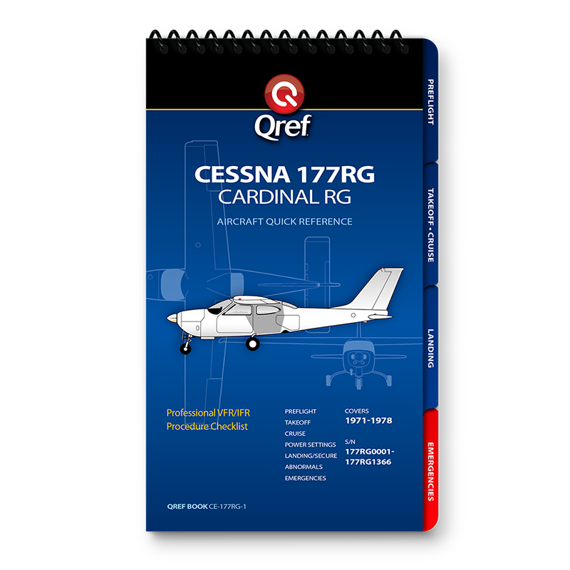 Qref BooksTopics Covered: Preflight, Takeoff/Cruise, Landing, Comprehensive Abnormals and Emergencies, V-speed list, cruise performance chart Get the most accurate, reliable aircraft checklist on the market with a Qref checklist. The procedures cover every aspect of flight, from preflight through takeoff, cruise, landing, and a comprehensive emergencies/abnormals section. Emergencies are arranged by system, meaning no more digging through pages to find the right section. Qref’s trademark is creating checklists that are easy for pilots to use. A major difference in aircraft checklists between Qref and others is the level of experience and expertise that go into every procedure. The Qref team of Master CFIs have over four decades of combined active flight instruction and flying experience at all levels of industry, with instruction and flight time in this aircraft. Further, they have taken advantage of the past 20 years of checklist design research. Qref’s team incorporates industry-best practices into these checklists and forthcoming publications. They not only create checklists, they use them in daily instruction and flying. Qref checklist design features a larger, more readable font, comprehensive procedures sectioned into tabs loaded with useful reference and conversions, and non-glare laminated pages. A complete table of contents makes finding the exact procedure quick. Find out for yourself why Qref aircraft checklists are fast becoming the Gold Standard in aviation. Qref CardsTopics Covered: Preflight, Takeoff/Cruise, Landing, Abnormals and Emergencies, V-speed list 2-card set: one for standard procedures, one for abnormals and emergencies. Q'Cards are designed for pilots who are already familiar with the aircraft but need an everyday checklist to keep relevant procedures at their fingertips. 5" x 9" (12.7 cm x 22.8 cm), the prefect size to fit on a yoke mount or kneeboard. Indestructible proprietary 10-mil laminate with non-glare, UV protective treatment means these checklists will withstand years of use. No other checklist has this! A major difference in aircraft checklists between Qref and others is the level of experience and expertise that go into every procedure. The Qref team of Master CFIs have over four decades of combined active flight instruction and flying experience at all levels of industry, with instruction and flight time in this aircraft. Further, they have taken advantage of the past 20 years of checklist design research. Qref’s team incorporates industry-best practices into these checklists and forthcoming publications. They not only create checklists, they use them in daily instruction and flying. Find out for yourself why Qref aircraft checklists are fast becoming the Gold Standard in aviation. |
