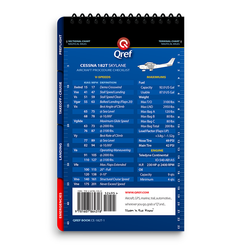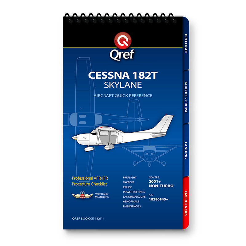 Qref BooksTopics Covered: Preflight, Takeoff/Cruise, Landing, Comprehensive Abnormals and Emergencies, V-speed list, cruise performance chart Get the most accurate, reliable aircraft checklist on the market with a Qref checklist. The procedures cover every aspect of flight, from preflight through takeoff, cruise, landing, and a comprehensive emergencies/abnormals section. Emergencies are arranged by system, meaning no more digging through pages to find the right section. Qref’s trademark is creating checklists that are easy for pilots to use. A major difference in aircraft checklists between Qref and others is the level of experience and expertise that go into every procedure. The Qref team of Master CFIs have over four decades of combined active flight instruction and flying experience at all levels of industry, with instruction and flight time in this aircraft. Further, they have taken advantage of the past 20 years of checklist design research. Qref’s team incorporates industry-best practices into these checklists and forthcoming publications. They not only create checklists, they use them in daily instruction and flying. Qref checklist design features a larger, more readable font, comprehensive procedures sectioned into tabs loaded with useful reference and conversions, and non-glare laminated pages. A complete table of contents makes finding the exact procedure quick. Find out for yourself why Qref aircraft checklists are fast becoming the Gold Standard in aviation. Qref CardsTopics Covered: Preflight, Takeoff/Cruise, Landing, Abnormals and Emergencies, V-speed list 2-card set: one for standard procedures, one for abnormals and emergencies. Q'Cards are designed for pilots who are already familiar with the aircraft but need an everyday checklist to keep relevant procedures at their fingertips. 5" x 9" (12.7 cm x 22.8 cm), the prefect size to fit on a yoke mount or kneeboard. Indestructible proprietary 10-mil laminate with non-glare, UV protective treatment means these checklists will withstand years of use. No other checklist has this! A major difference in aircraft checklists between Qref and others is the level of experience and expertise that go into every procedure. The Qref team of Master CFIs have over four decades of combined active flight instruction and flying experience at all levels of industry, with instruction and flight time in this aircraft. Further, they have taken advantage of the past 20 years of checklist design research. Qref’s team incorporates industry-best practices into these checklists and forthcoming publications. They not only create checklists, they use them in daily instruction and flying. Find out for yourself why Qref aircraft checklists are fast becoming the Gold Standard in aviation. |