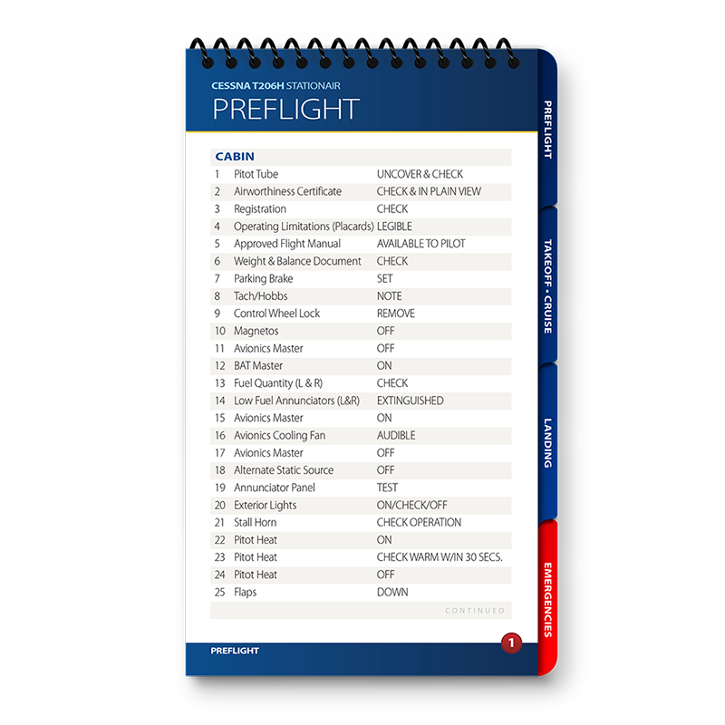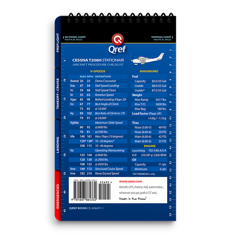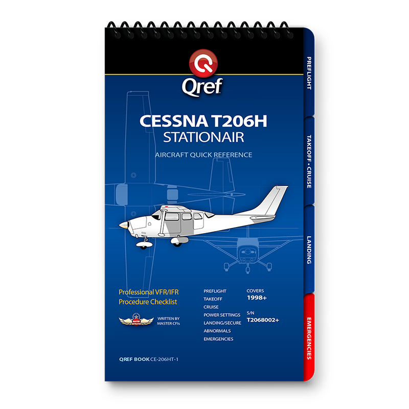 Qref BooksTopics Covered: Preflight, Takeoff/Cruise, Landing, Comprehensive Abnormals and Emergencies, V-speed list, cruise performance chart Get the most accurate, reliable aircraft checklist on the market with a Qref checklist. The procedures cover every aspect of flight, from preflight through takeoff, cruise, landing, and a comprehensive emergencies/abnormals section. Emergencies are arranged by system, meaning no more digging through pages to find the right section. Qref’s trademark is creating checklists that are easy for pilots to use. A major difference in aircraft checklists between Qref and others is the level of experience and expertise that go into every procedure. The Qref team of Master CFIs have over four decades of combined active flight instruction and flying experience at all levels of industry, with instruction and flight time in this aircraft. Further, they have taken advantage of the past 20 years of checklist design research. Qref’s team incorporates industry-best practices into these checklists and forthcoming publications. They not only create checklists, they use them in daily instruction and flying. Qref checklist design features a larger, more readable font, comprehensive procedures sectioned into tabs loaded with useful reference and conversions, and non-glare laminated pages. A complete table of contents makes finding the exact procedure quick. Find out for yourself why Qref aircraft checklists are fast becoming the Gold Standard in aviation. Qref CardsTopics Covered: Preflight, Takeoff/Cruise, Landing, Abnormals and Emergencies, V-speed list 2-card set: one for standard procedures, one for abnormals and emergencies. Q'Cards are designed for pilots who are already familiar with the aircraft but need an everyday checklist to keep relevant procedures at their fingertips. 5" x 9" (12.7 cm x 22.8 cm), the prefect size to fit on a yoke mount or kneeboard. Indestructible proprietary 10-mil laminate with non-glare, UV protective treatment means these checklists will withstand years of use. No other checklist has this! A major difference in aircraft checklists between Qref and others is the level of experience and expertise that go into every procedure. The Qref team of Master CFIs have over four decades of combined active flight instruction and flying experience at all levels of industry, with instruction and flight time in this aircraft. Further, they have taken advantage of the past 20 years of checklist design research. Qref’s team incorporates industry-best practices into these checklists and forthcoming publications. They not only create checklists, they use them in daily instruction and flying. Find out for yourself why Qref aircraft checklists are fast becoming the Gold Standard in aviation. |